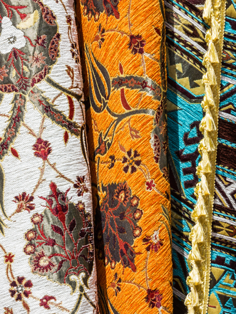 日陰のある大きなアーケードの下には、ショップや屋台が隣り合って並び、カーペットや、真鍮を打ち出したもの、カラフルな陶器、木彫り、形を整えた革などモロッコの工芸品を幅広く取り揃えています。イスラム教のスタイルと習慣を尊重し、さまざまなスーク、いくつかのハマム(公衆浴場)、礼拝所などがあります。